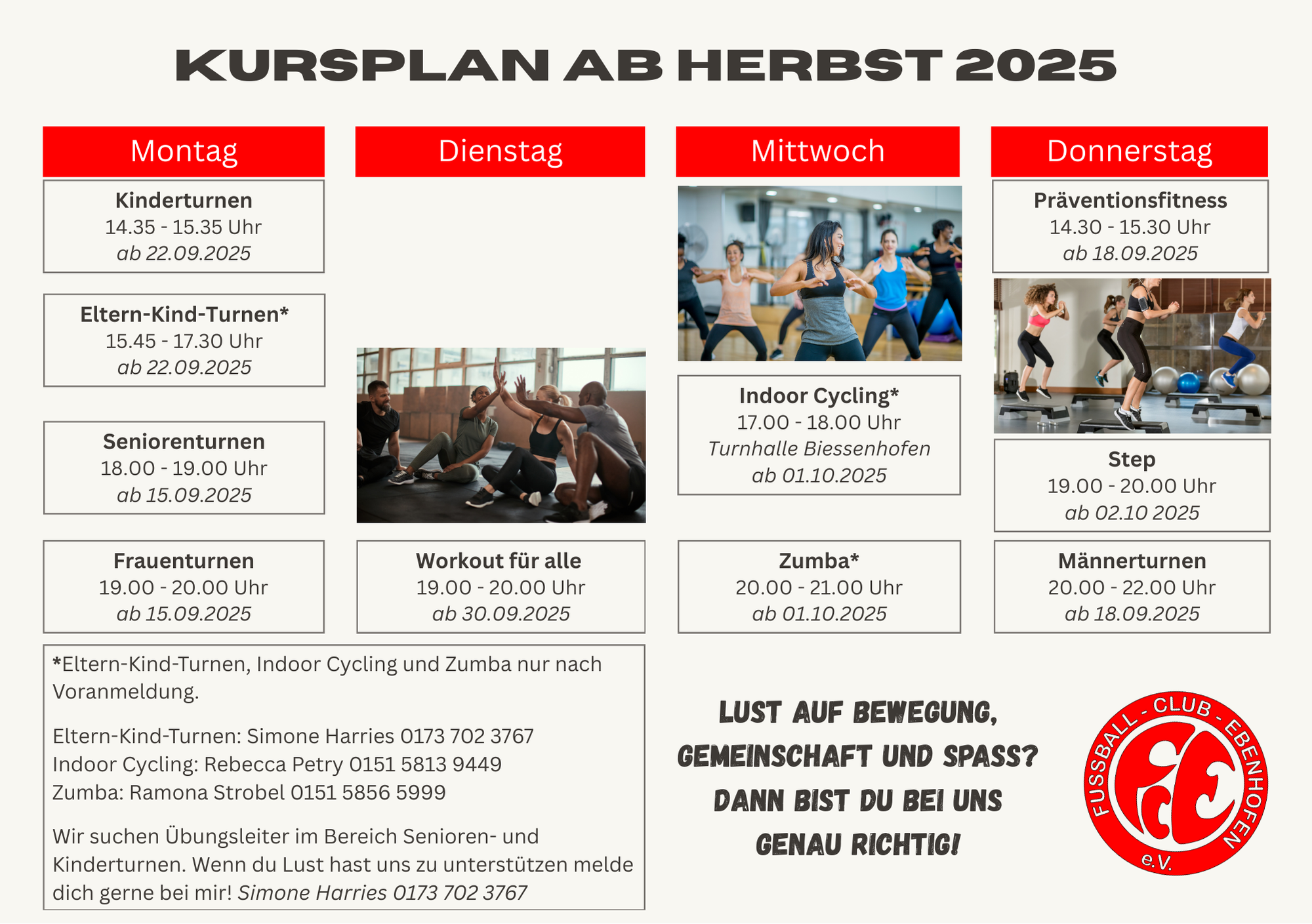 Genauere Info's zu den einzelnen Stunden findest du im Menü, bei Fragen wende dich gerne an die Ansprechpartner der Abteilung.